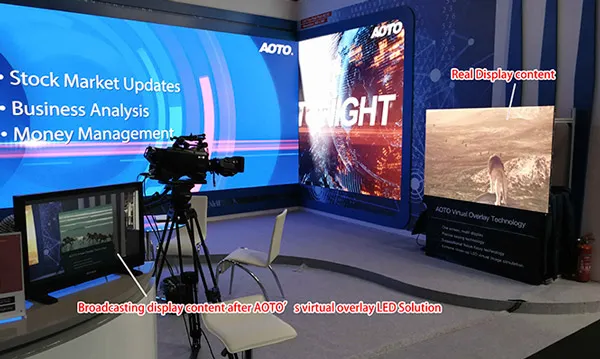 Photo Scissors solution was popular before in TV studio solution, but seems uninteresting and boring in TV views, which greatly decreased the TV’s media broadcasting effect. As a result, AOTO pushed Virtual Overlay solution and applied it for fine pixel pitch led display, which makes TV viewers in different channel could see different advertising image. AOTO’s virtual overlay LED display, “One screen, Multi-display” feature of LED virtual overlay broadcast system will admirably promote the presentence and Precision of the advertising. This will make sure the event organizers and the TV station achieve more profit.
