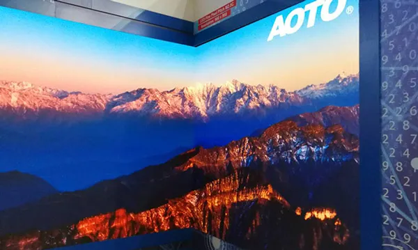 Besides, AOTO LED Display presented unique 90° angle Seamless Splice structure design to meet the needs of different creative design requirement. A M1.7C screen was at right angles to a M2.5C screen, showing a seamless and comprehensive image. AOTO MXC’s dedicated mechanical structure makes different pixel pitch screen could match with each other, which could meet the high requirement level of visual impact and make 60 degree triangle structure and many other creative designs possible.