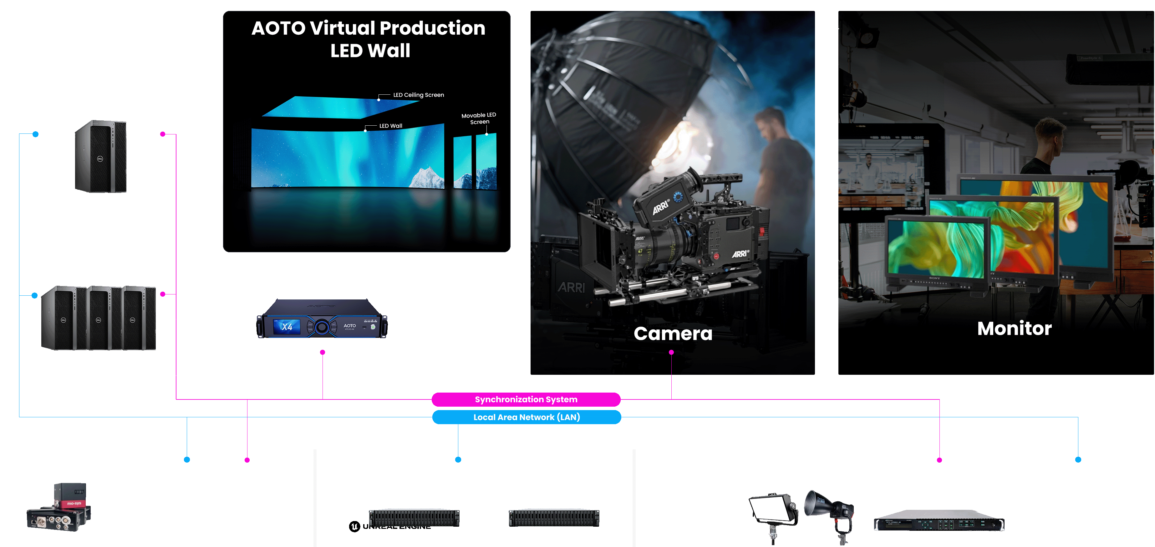 AOTO delivers professional LED displays engineered for VP/XR applications, featuring low-scan design, high refresh rates and a wide color gamut for smooth, vibrant visuals.