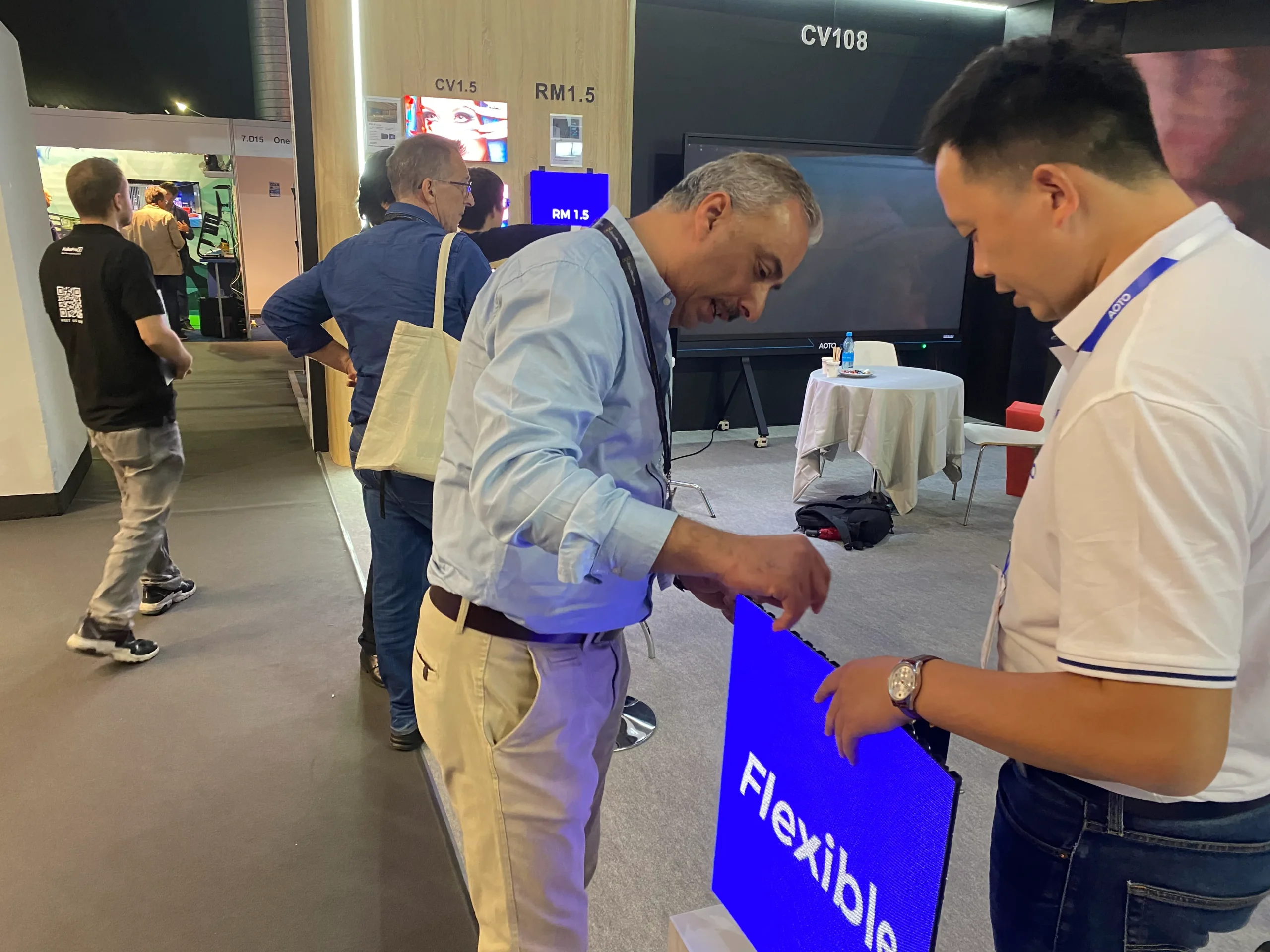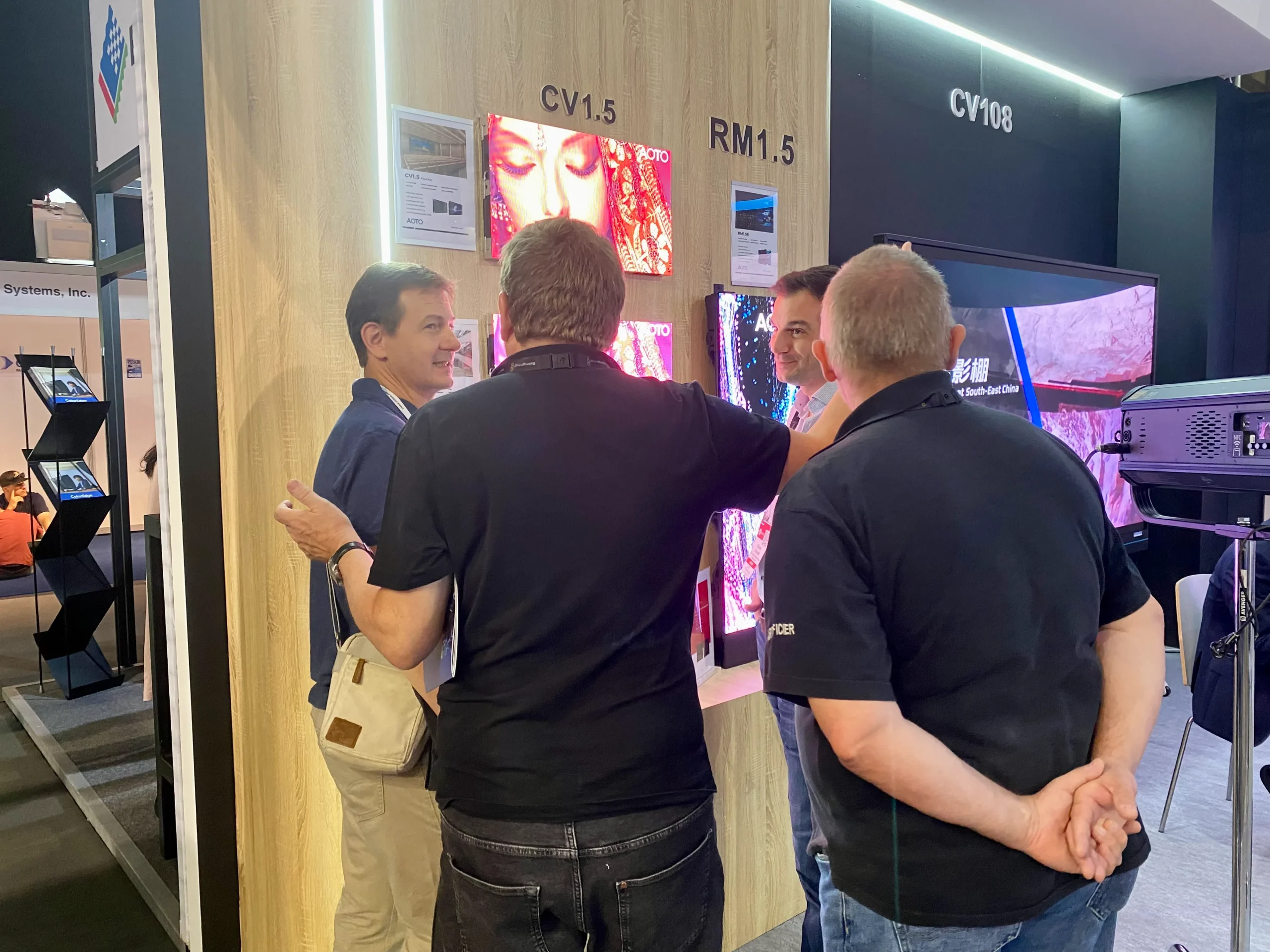 Moreover, AOTO showcased a comprehensive selection of fine pixel-pitch LED displays, such as CB0.9 (COB) and CV1.2 (GOB) flat screens, CV1.5 (Mini LED) curved screens, and C1.8 curved screens at the exhibition. LED displays with a fine pixel pitch from AOTO are quite popular in the broadcasting and television industries because of the seamless and smooth splicing effect; it is possible to generate a great shooting effect in a high-definition camera environment which results in an excellent visual experience for the audience in front of the TV.