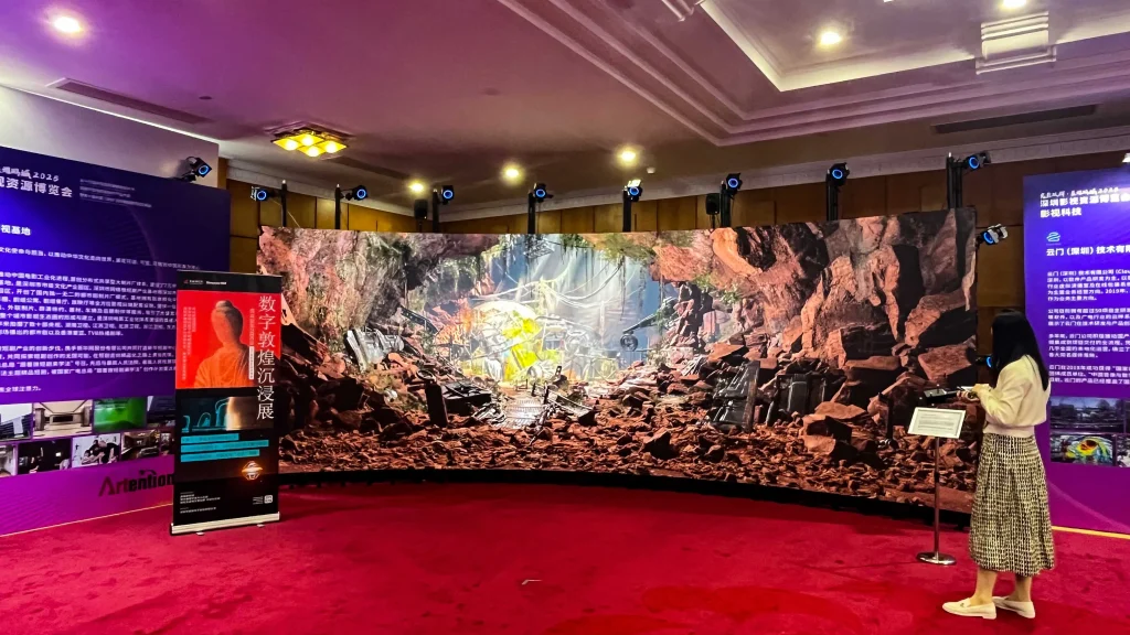 “Exploring Dunhuang” eliminates the need for VR goggles, allowing visitors to step directly into the 1,600-year-old Mogao Cave 285—a UNESCO World Heritage site typically closed to the public. AOTO’s RM Series LED walls, combined with Tencent’s motion capture integration, enable: