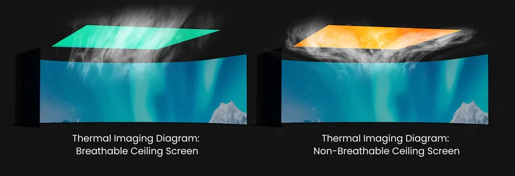 To address this, AOTO’s SW Series Ceiling Screen achieves a breakthrough “breathable and lightproof” technical approach, successfully striking a precise balance between “permeability” and “containment.” The solution employs a dual-path collaborative design: